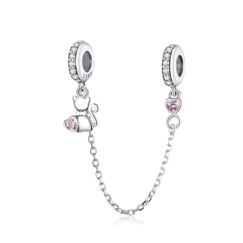 La ‘Cadena de Seguridad de Plata Gato y Corazón’ es la combinación perfecta de practicidad y encanto. Esta cadena de seguridad, meticulosamente diseñada, no solo protege tus brazaletes y charms de un desliz accidental, sino que también añade una nota de alegría y afecto con sus adorables detalles. La plata esterlina de alta calidad proporciona un brillo duradero, mientras que los engastes de zirconia en forma de corazón ofrecen un toque de amor y los colgantes en forma de gato evocan una sensación de juego y curiosidad.