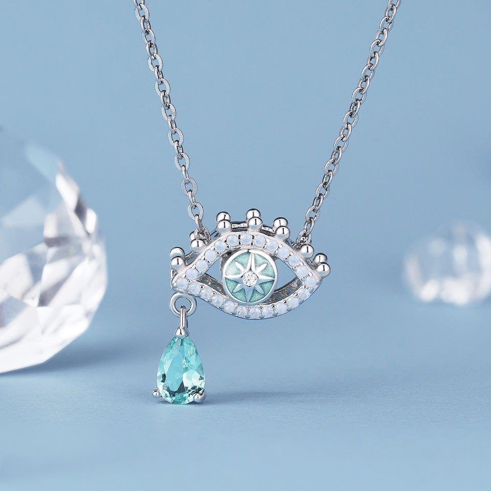 Sumérgete en el misticismo y el estilo con nuestro Charm de Plata «Visión Celestial». Este deslumbrante charm de plata incorpora la silueta icónica del ojo, símbolo universal de protección y sabiduría. Adornado con cristales luminosos y una estrella central que cautiva la mirada, este charm añade un brillo excepcional a tu colección. La pieza central es una gota facetada de cristal en tono verde agua, reflejo de claridad y renovación.