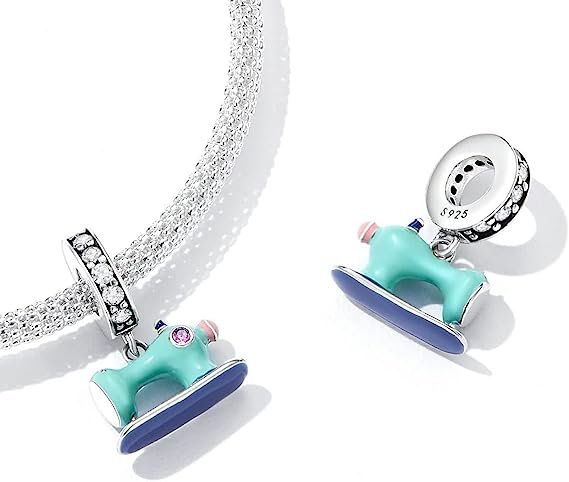El charm «Máquina de coser» es una celebración de la herencia textil y la belleza del diseño hecho a mano. Inspirado en las clásicas máquinas de coser, este accesorio de plata posee un acabado en esmalte aqua que evoca la sensación de una época donde la confección era una habilidad valorada y transmitida a través de generaciones. El rosa suave del volante y el cristal morado incrustado sirven como acentos preciosos que capturan la esencia de la moda y la feminidad.